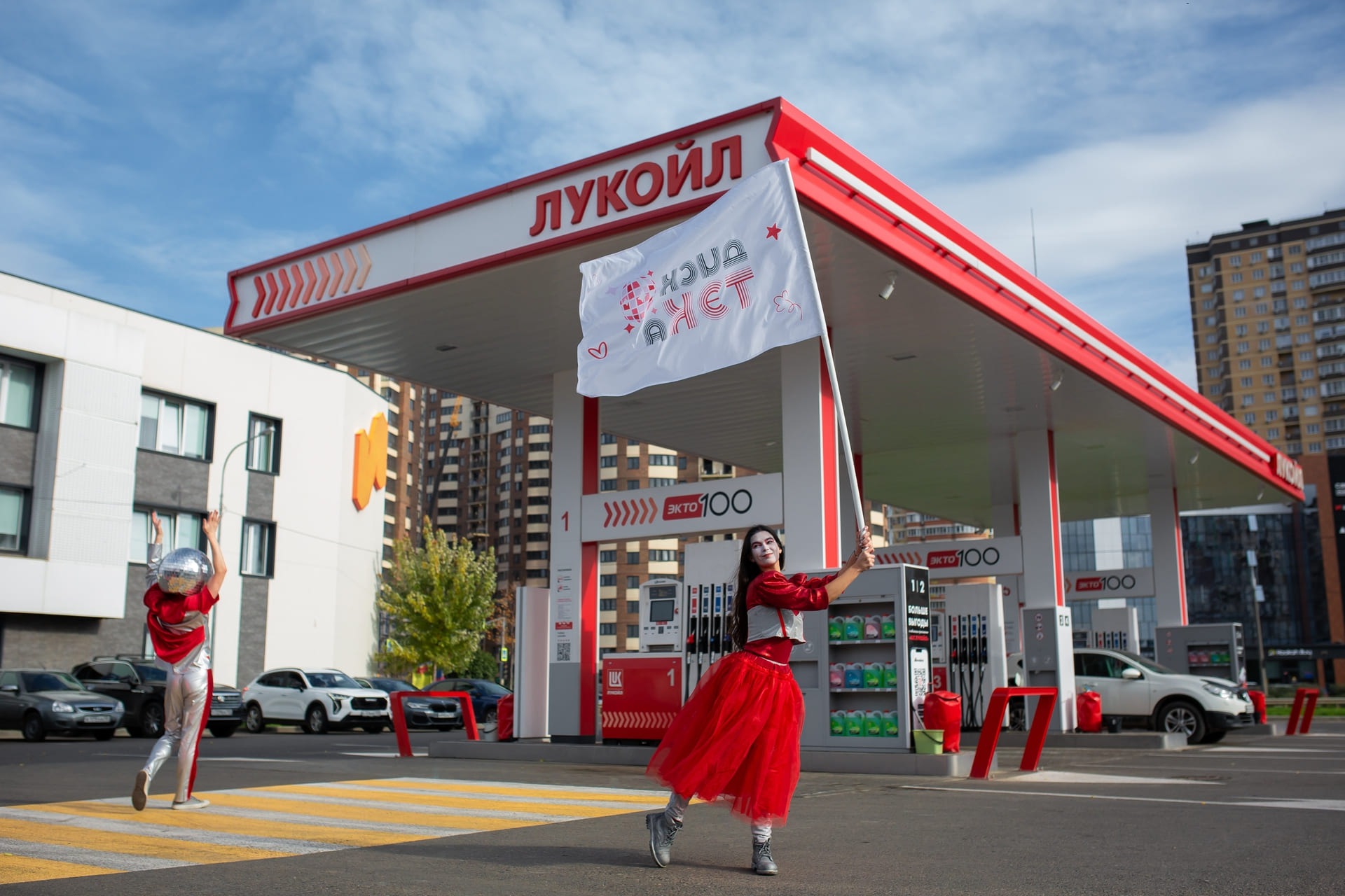 Задача: организовать яркий и запоминающийся промодень на заправке Лукойл с целью привлечения внимания аудитории, повышения узнаваемости бренда и создания праздничной атмосферы.