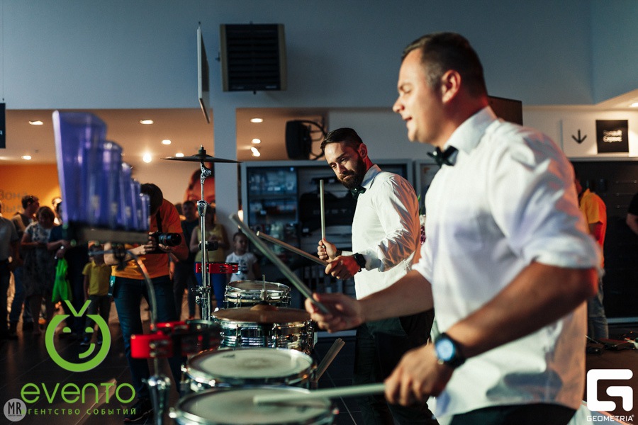 Программа вечера была разнообразной и насыщенной: присутствующих развлекали артисты, приехавшие на праздник со всего ЮФО: кавер-группы, динамичные барабанщики, романтичный аккордеонист, забавные мимы.