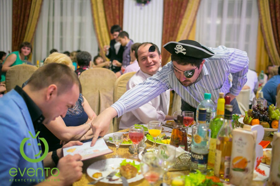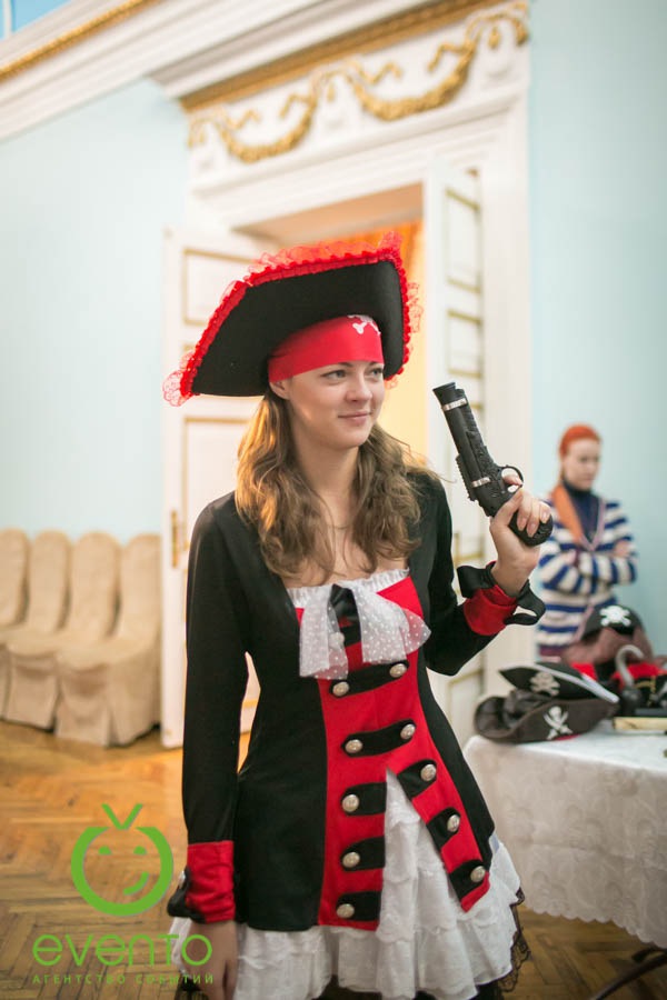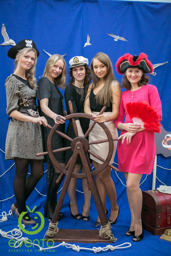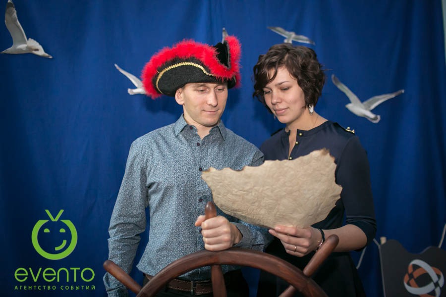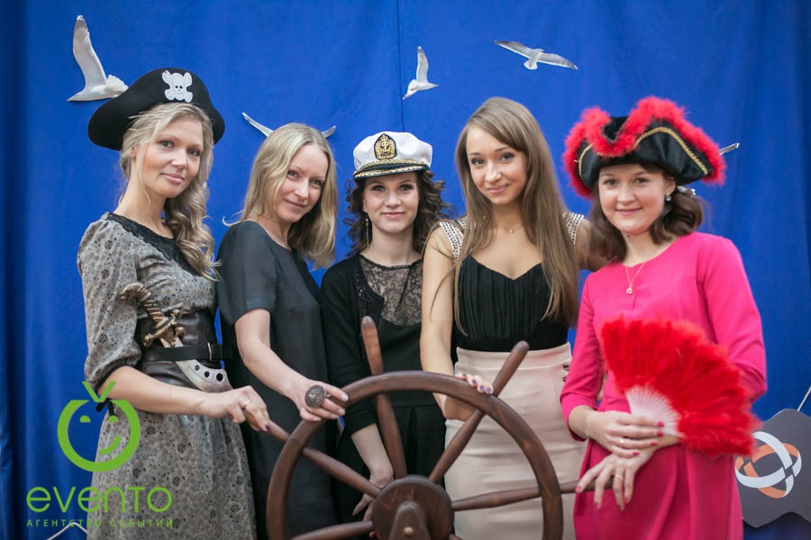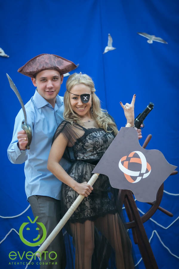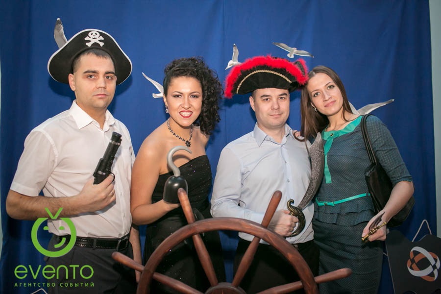 Фишки: ритуал привлечения попутного ветра на 2014 год, тематическая фотозона, тир для настоящих пиратов, организация флешмоба с сотрудниками.