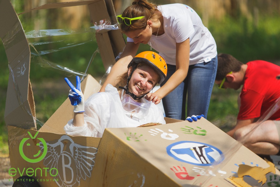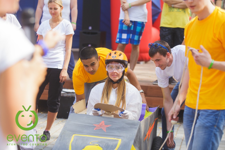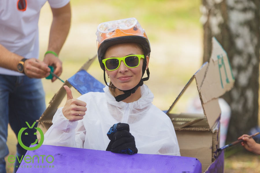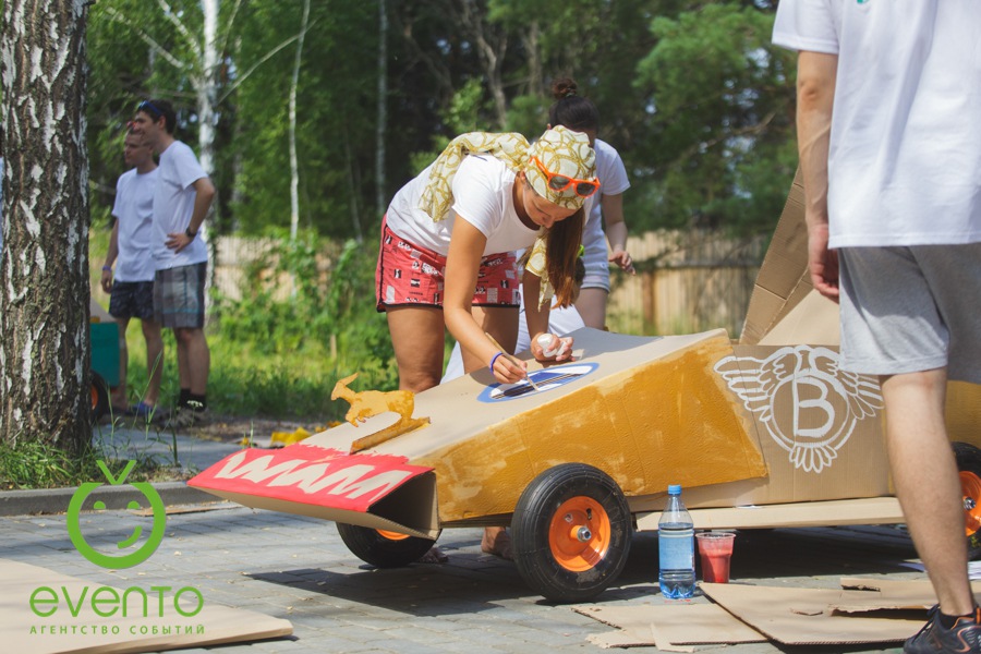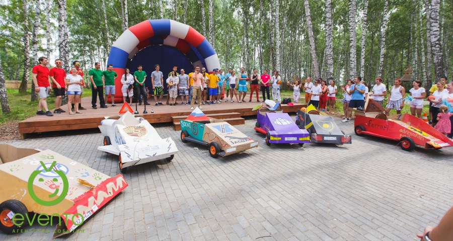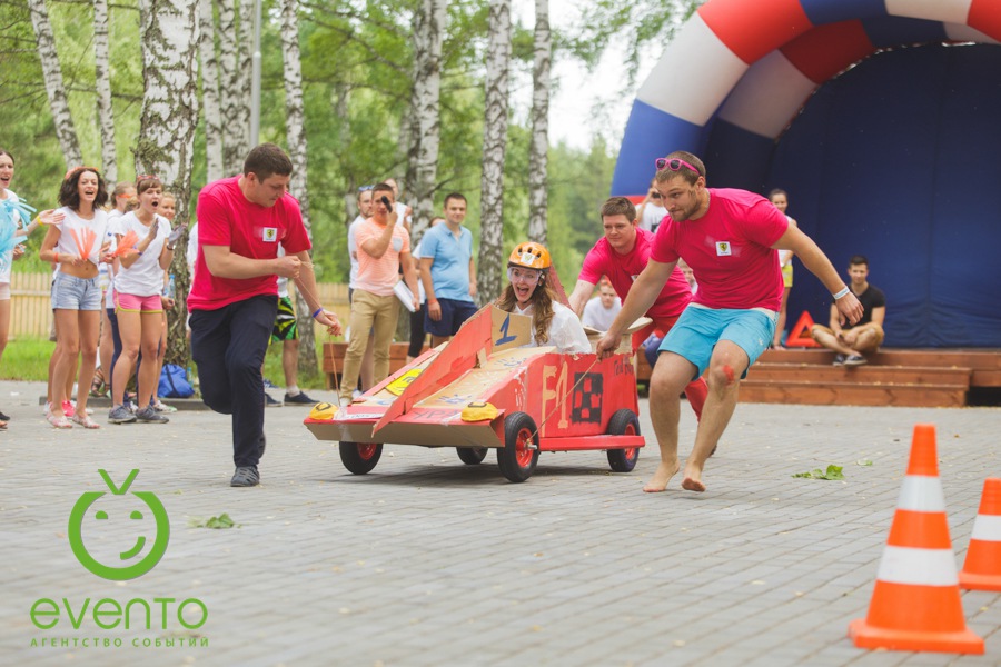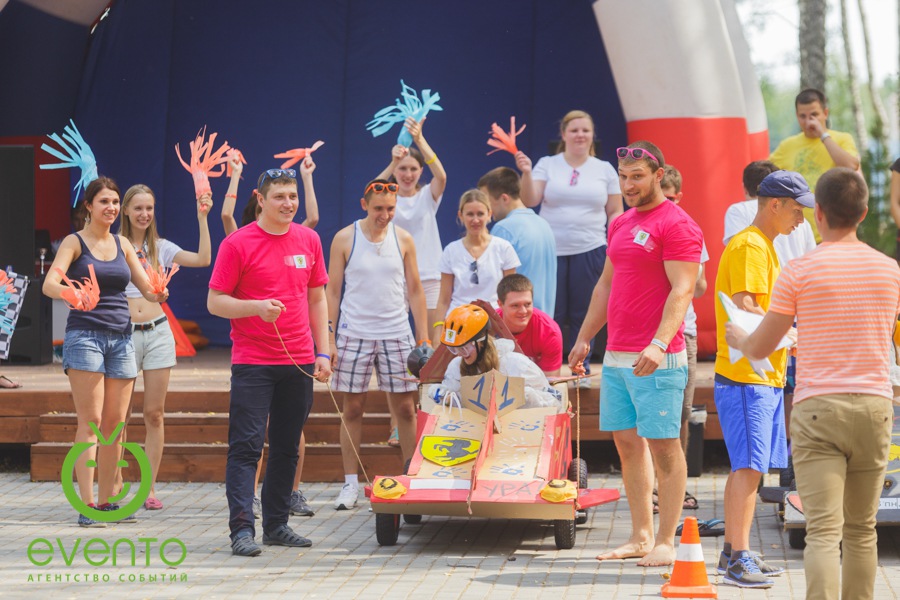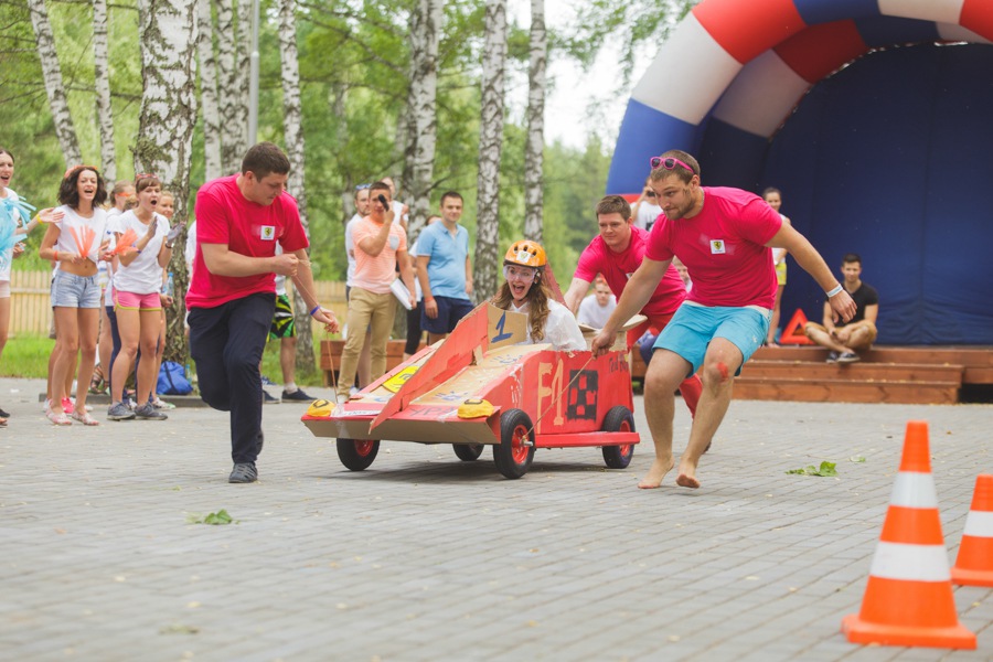 После веселой утренней зарядки вместе с нашими аниматорами все отправились на тимбилдинг. Задания на сплочение не только выполнили свою основную функцию – сближение коллег, но и зарядили всех позитивом! Далее молодые специалисты изготавливали настоящие гоночные болиды: каркас, дизайн, костюмы гонщиков. Когда все болиды были сделаны, состоялись настоящие большие гонки! Команды, чувствуя себя участниками формулы -1, соревновались не на шутку.