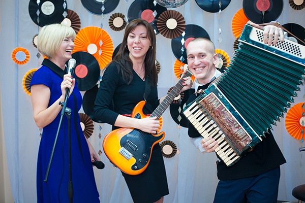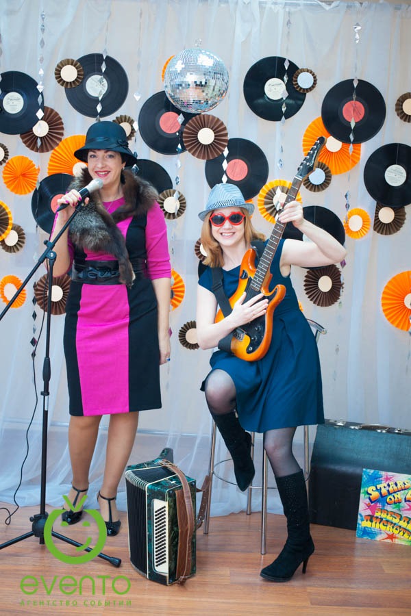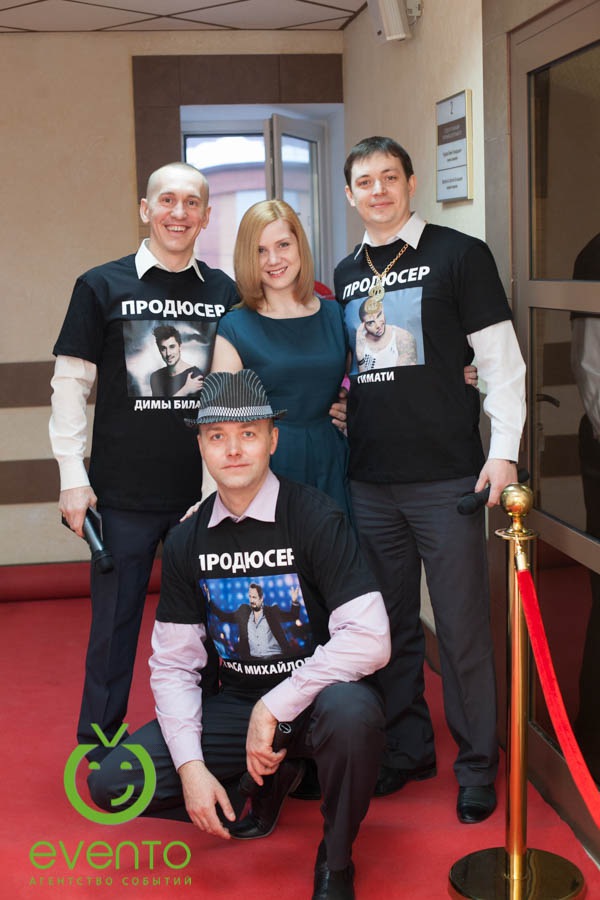 Решение: с самого утра вся прекрасная половина коллектива попадает в самый настоящий продюсерский центр, где кругом одни звезды, идут прослушивания и записываются новые хиты!